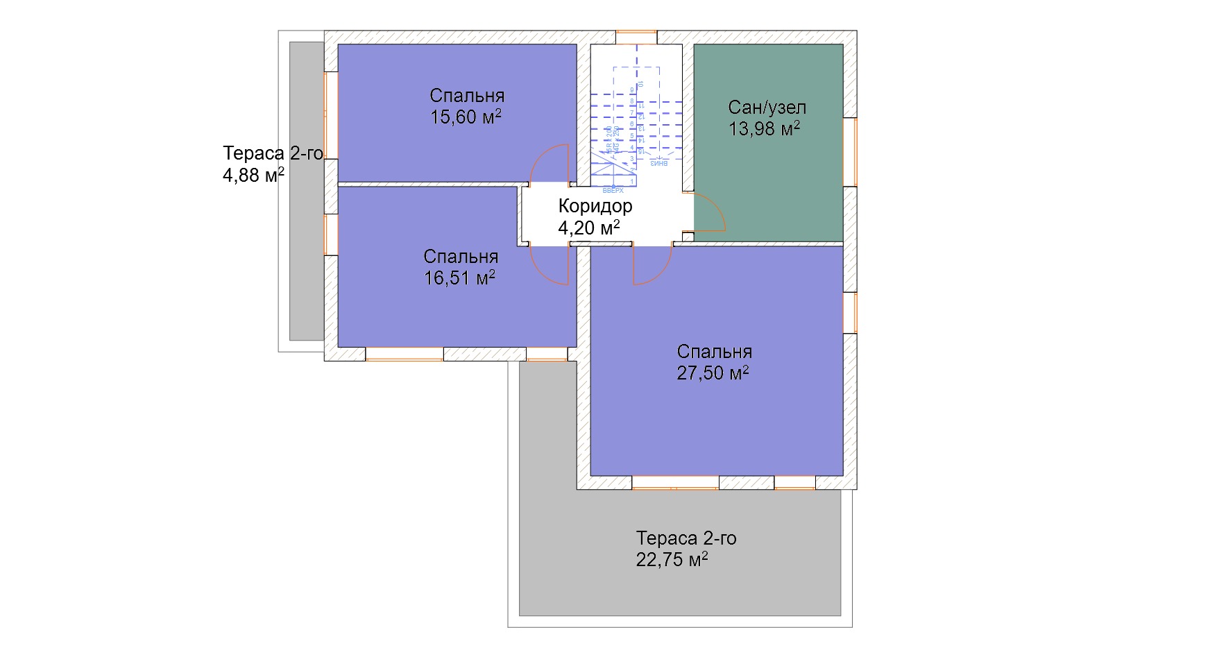 - Террасы 2-го этажа 27.63 м.кв.